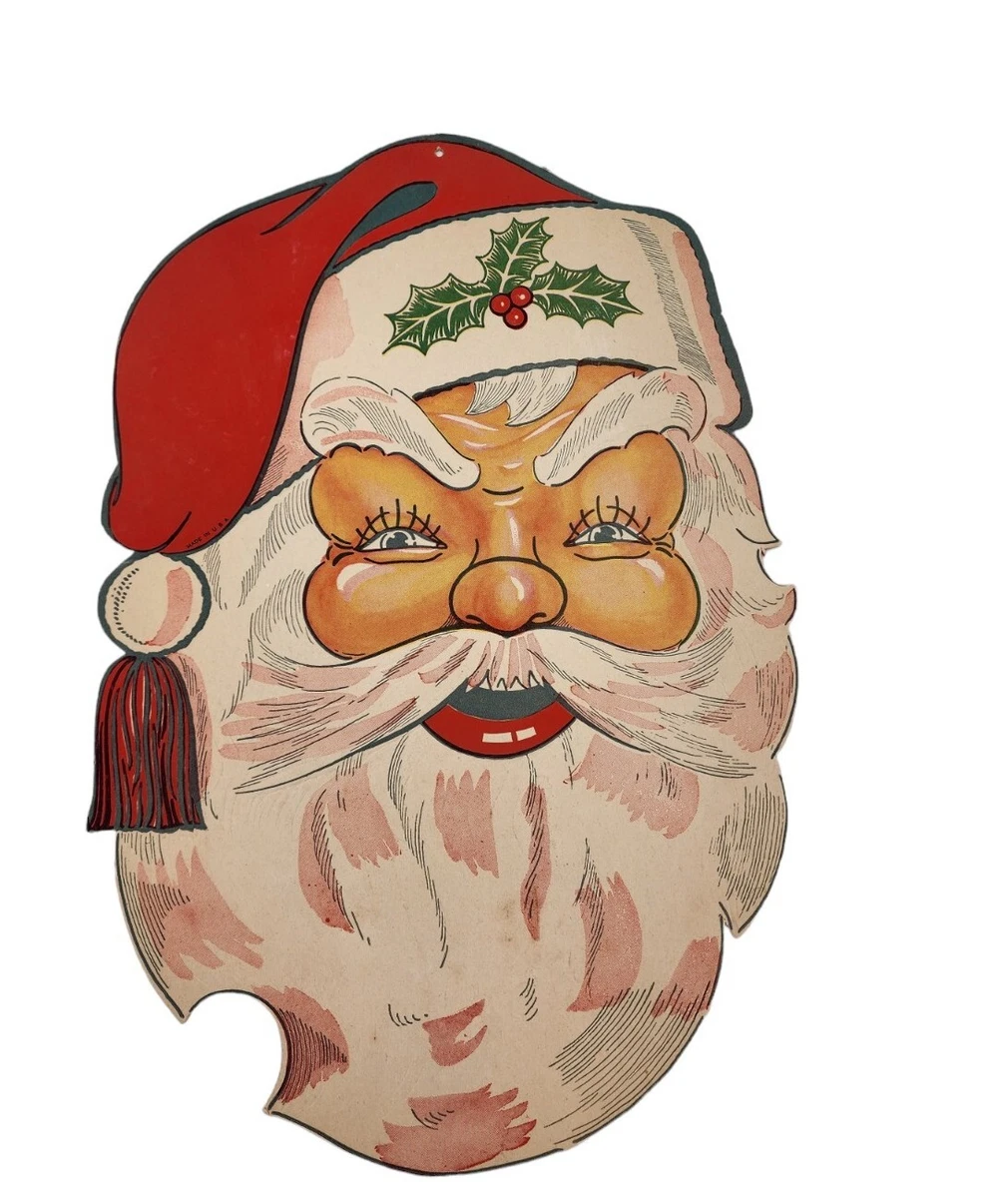 Vintage Large 18 Christmas Santa Claus Face Head Die Cut Embossed Usa Diecut Ebay